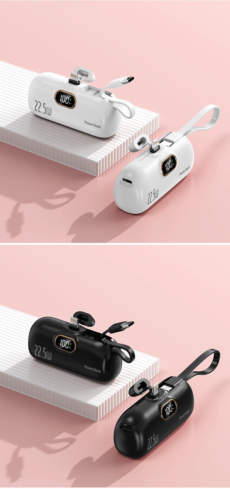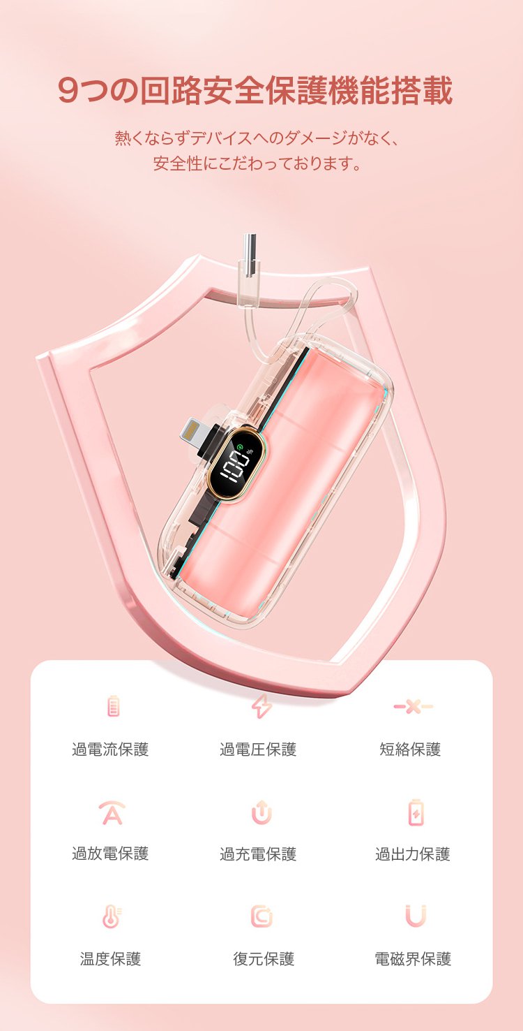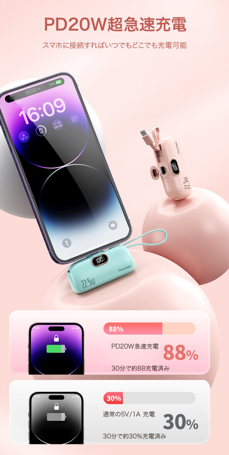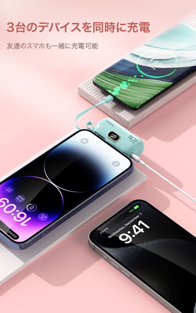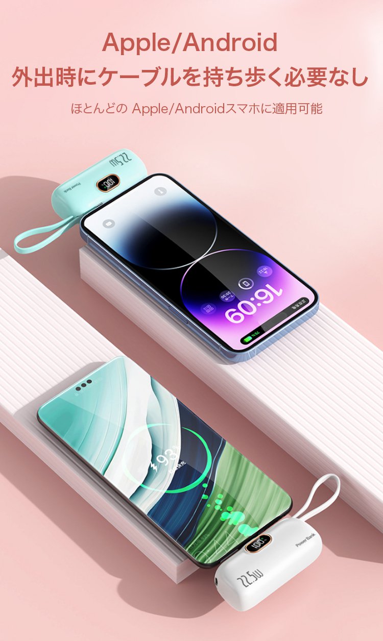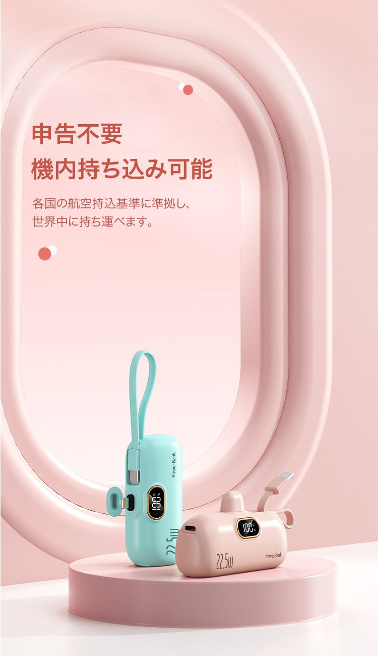 ケーブル付き小型モバイルバッテリー