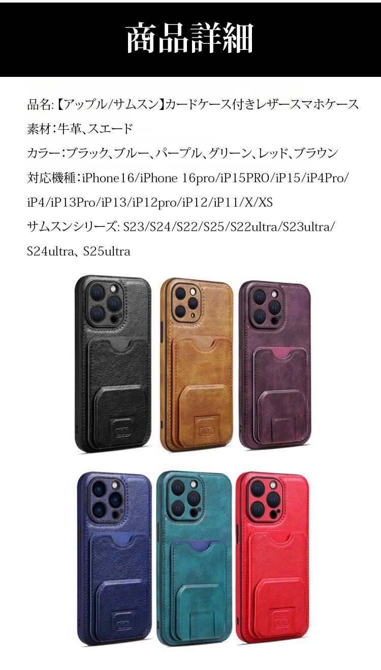 【アップル/サムスン】カードケース付きレザースマホケース