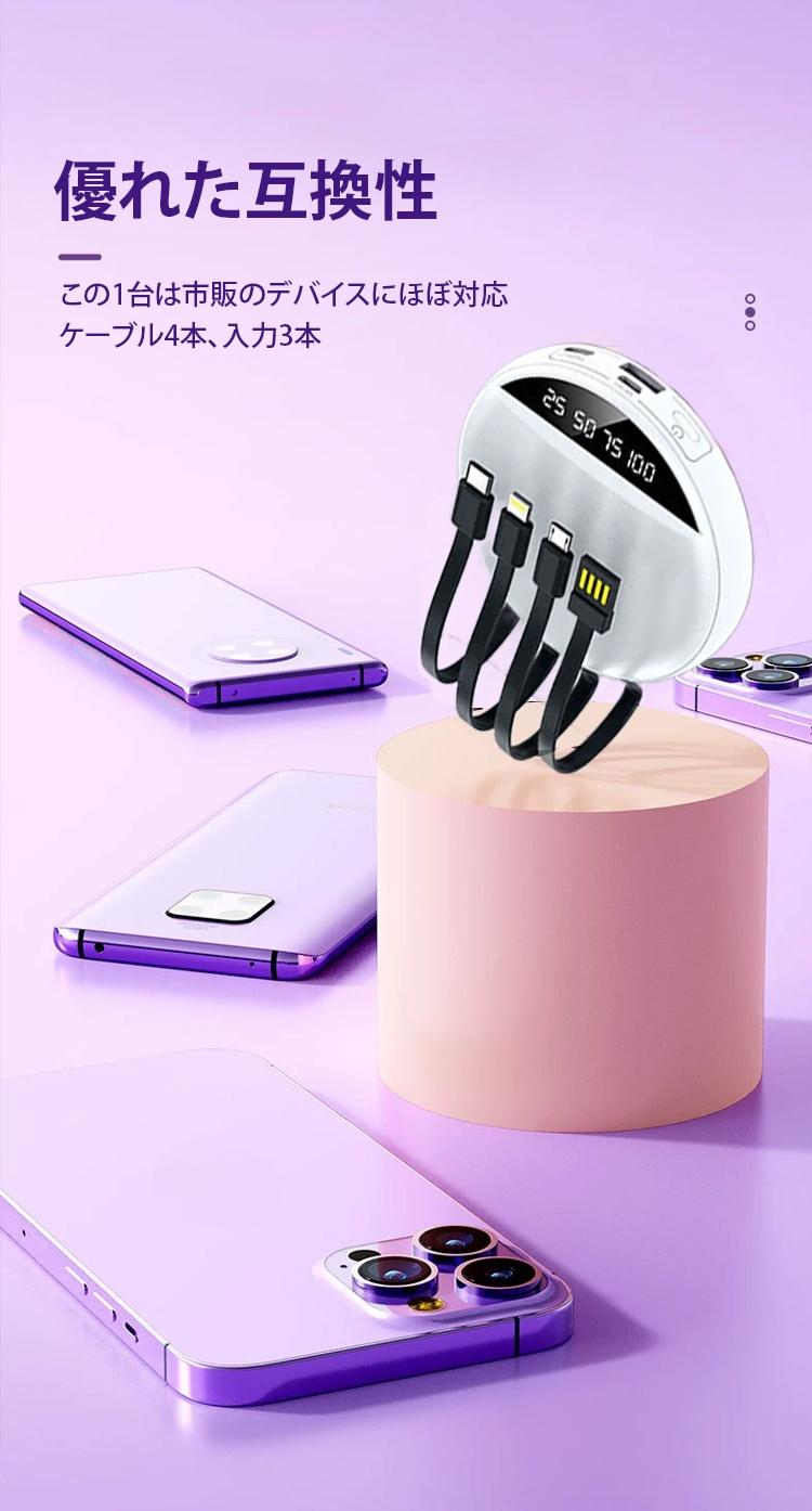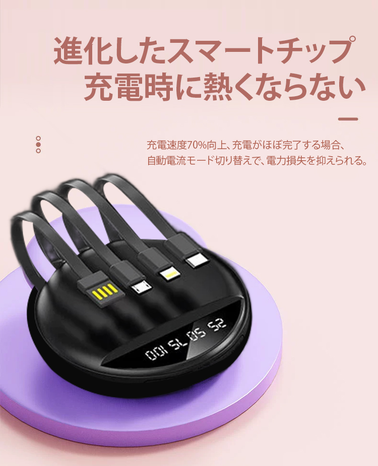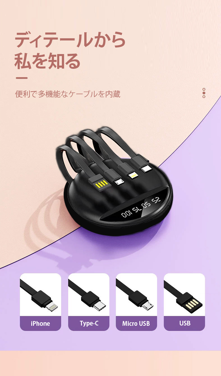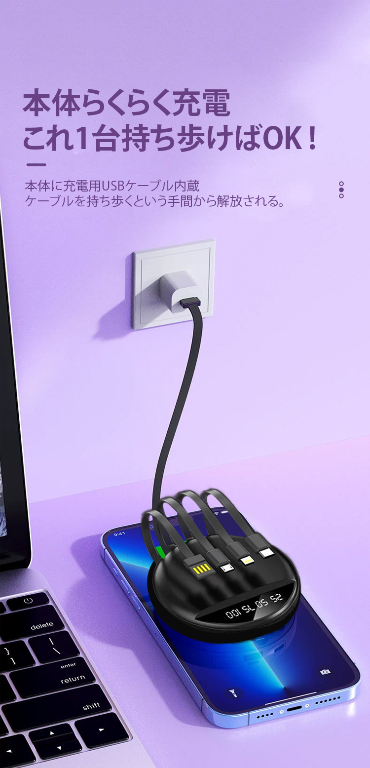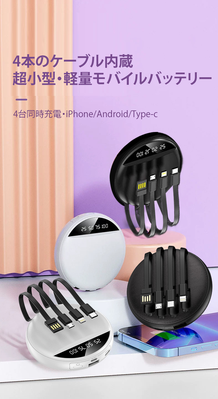 ケーブル4本内蔵モバイルバッテリー